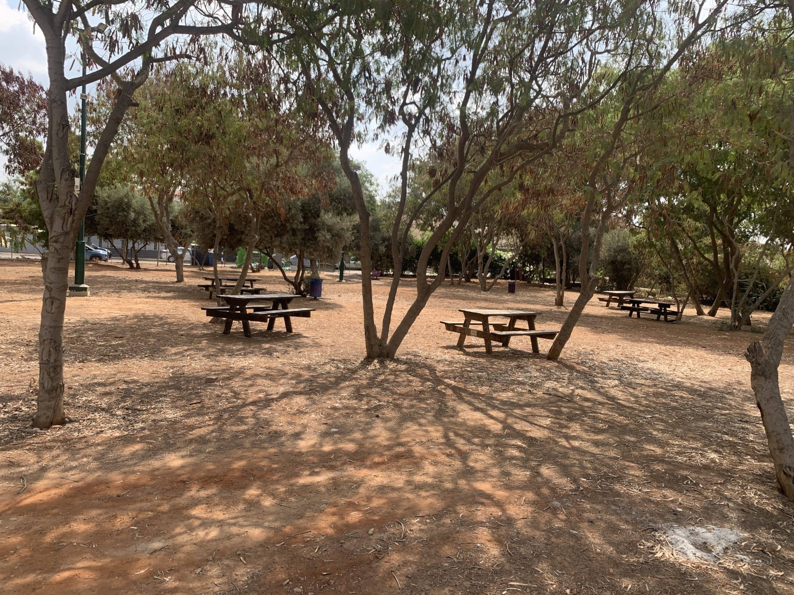 פארק ע״ש יצחק שמיר – מקום נחמד עם הרבה שולחנות פיקניק מפוזרים בתוך שטח מגודר.